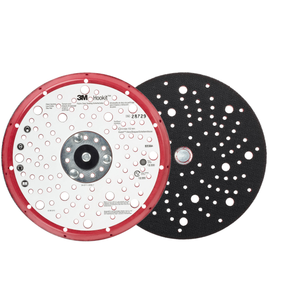Bruk 3M™ Hookit™ Lavprofils bakplate for sliperondeller for bedre “kontakt” og raskere avvirkning. Bakplatene er laget spesielt for bruk med 6-tommers Hookit™ -rondeller. Laget med medium tetthets skum – platen har en stump kant som gir bedre slitestyrke i kanten. Den har 5/16 EXT gjenger.
