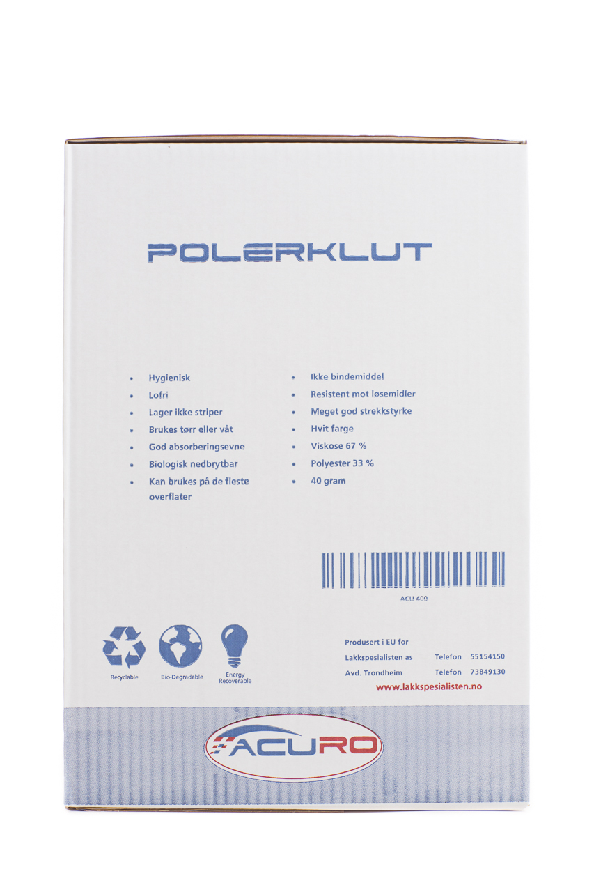 En god polerklut til en fornuftig pris. Leveres i kartong med uttrekk. 400 ark pr. kartong a`30 x 40 cm.
