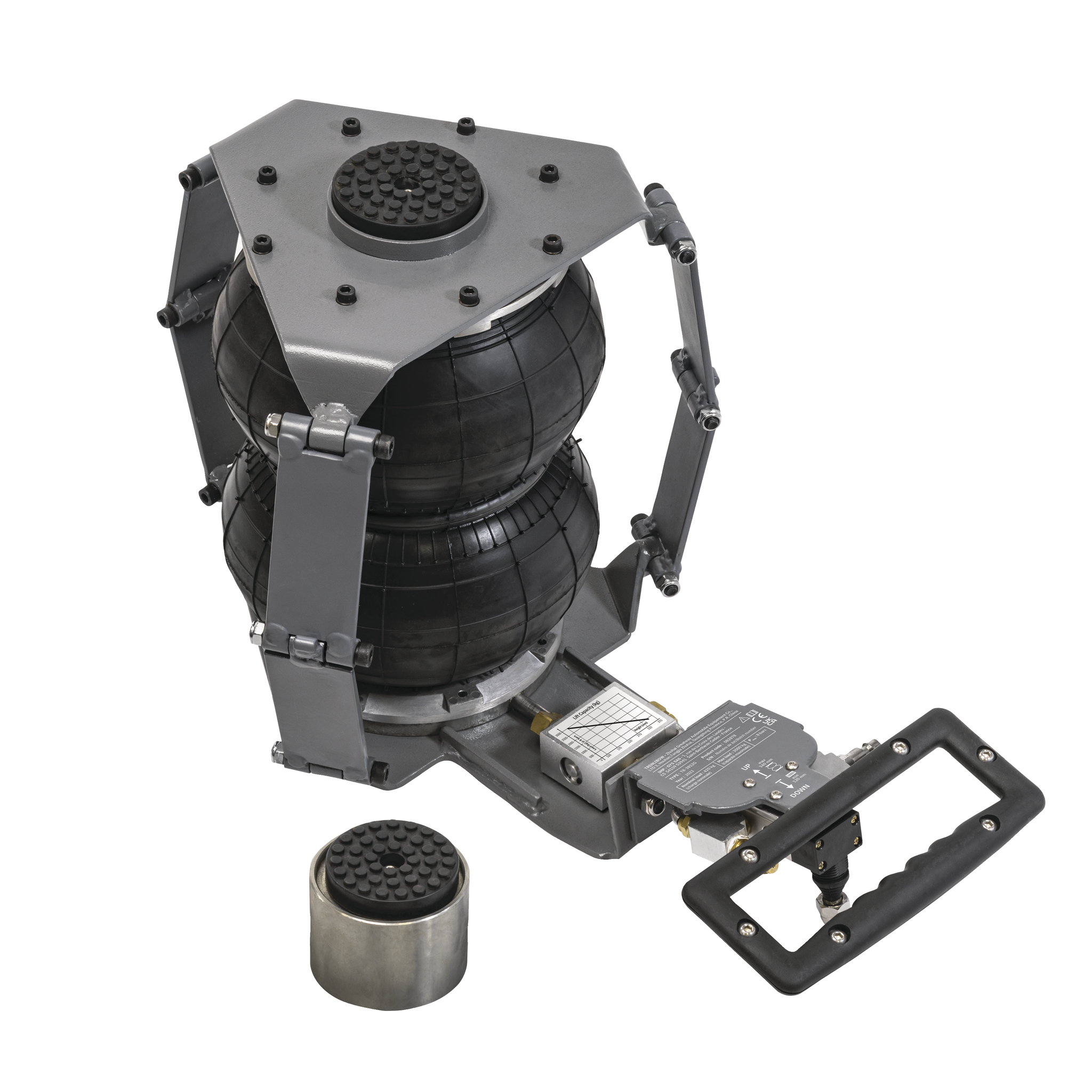 GYS AIR JACK pneumatisk belgløfter består av en høystyrke membran og en utvendig teleskopguide som gir svært god stabilitet under løft.