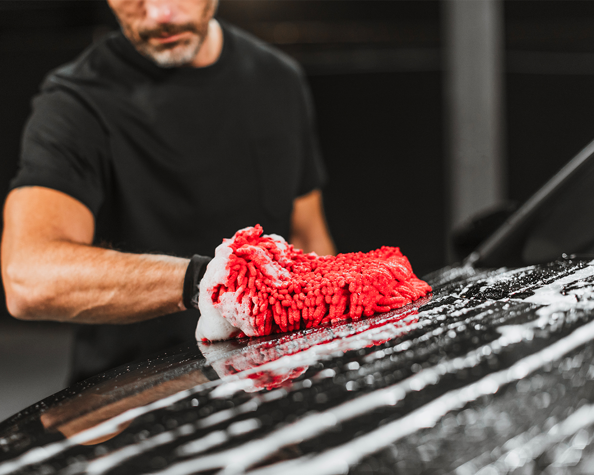 4. Arbeid alltid med en kjølig overflate, og bruk sjampoen fra taket på bilen og nedover. Bruk gjerne Microfiber Wash Mitt fra Autoglym.