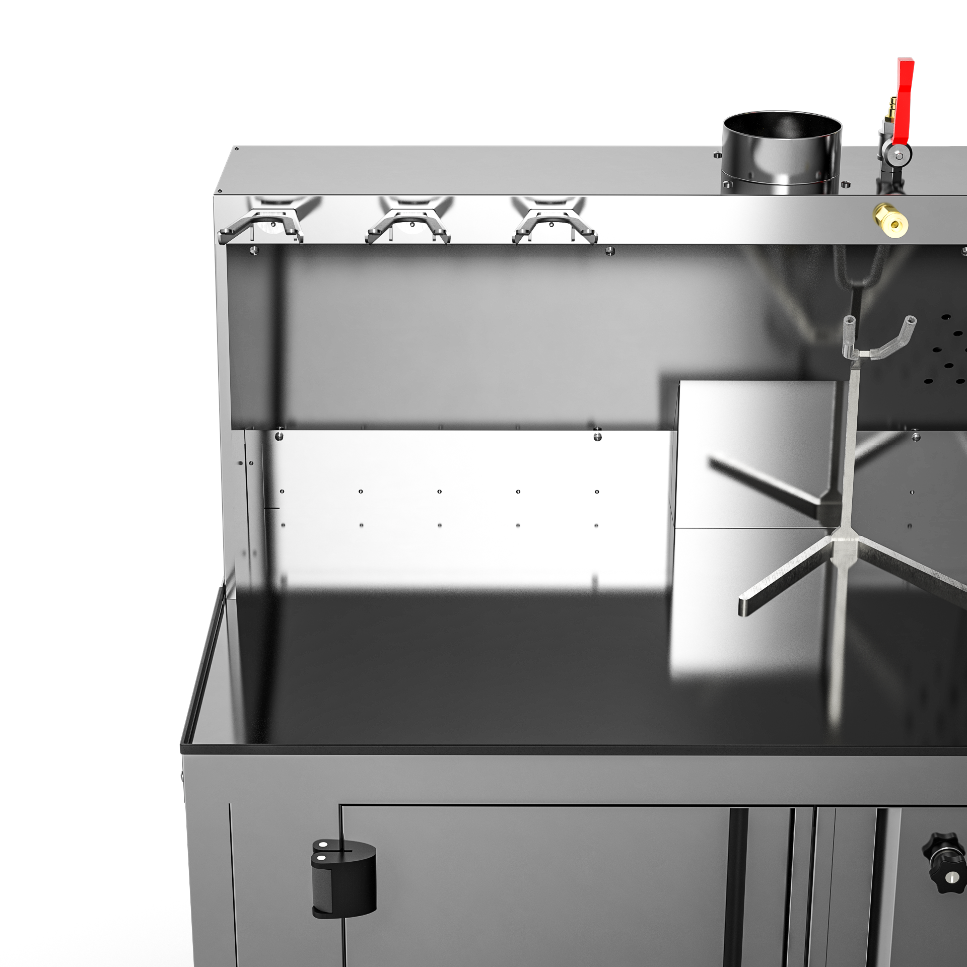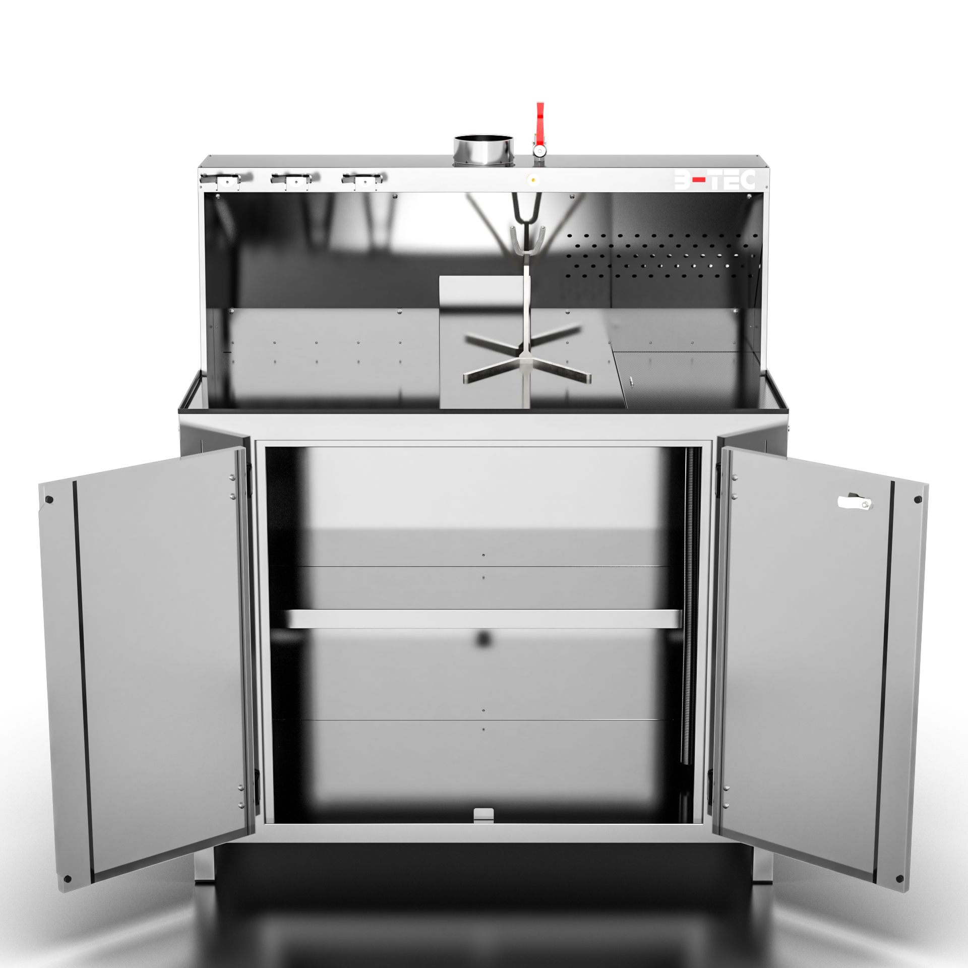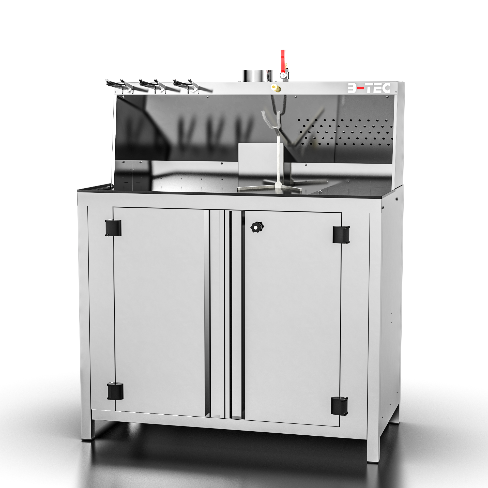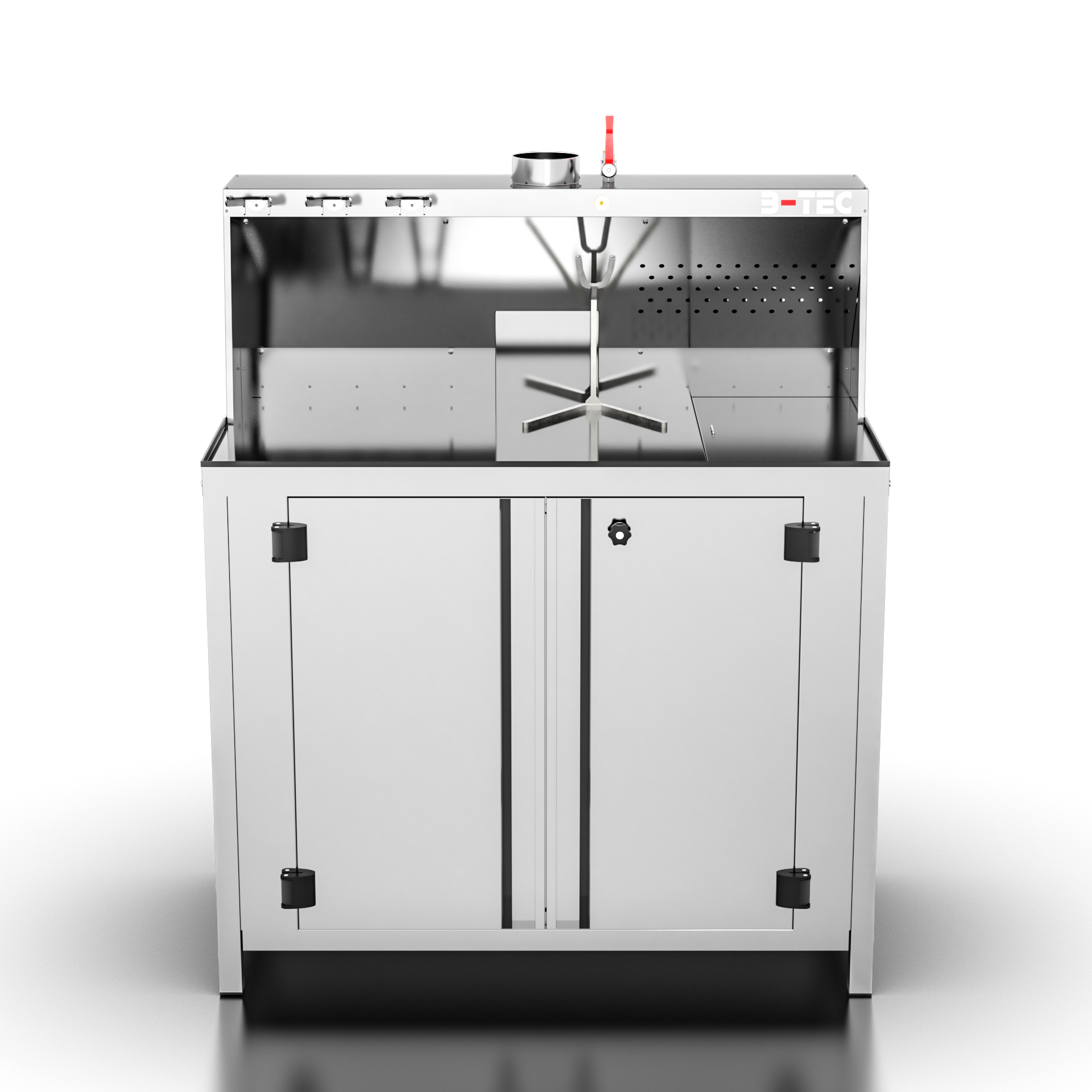 Kvalitetsbenk fra B-Tec i rustfritt stål med dører og avsug.