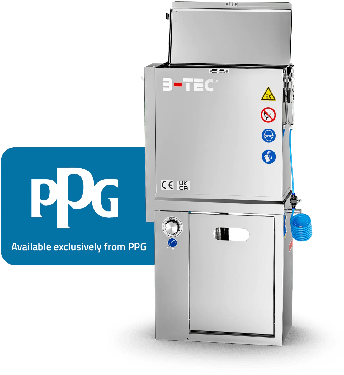 Best resultat oppnås ved bruk av den vannbaserte B-TEC H2O-Cleaner-MW. Ved å benytte SPEEDBOX-MoonWalk, som er egnet for alle beholderstørrelser, øker du effektiviteten, forlenger levetiden på MoonWalk-doseringsenhetene og gjør blandeprosessen enda tryggere.