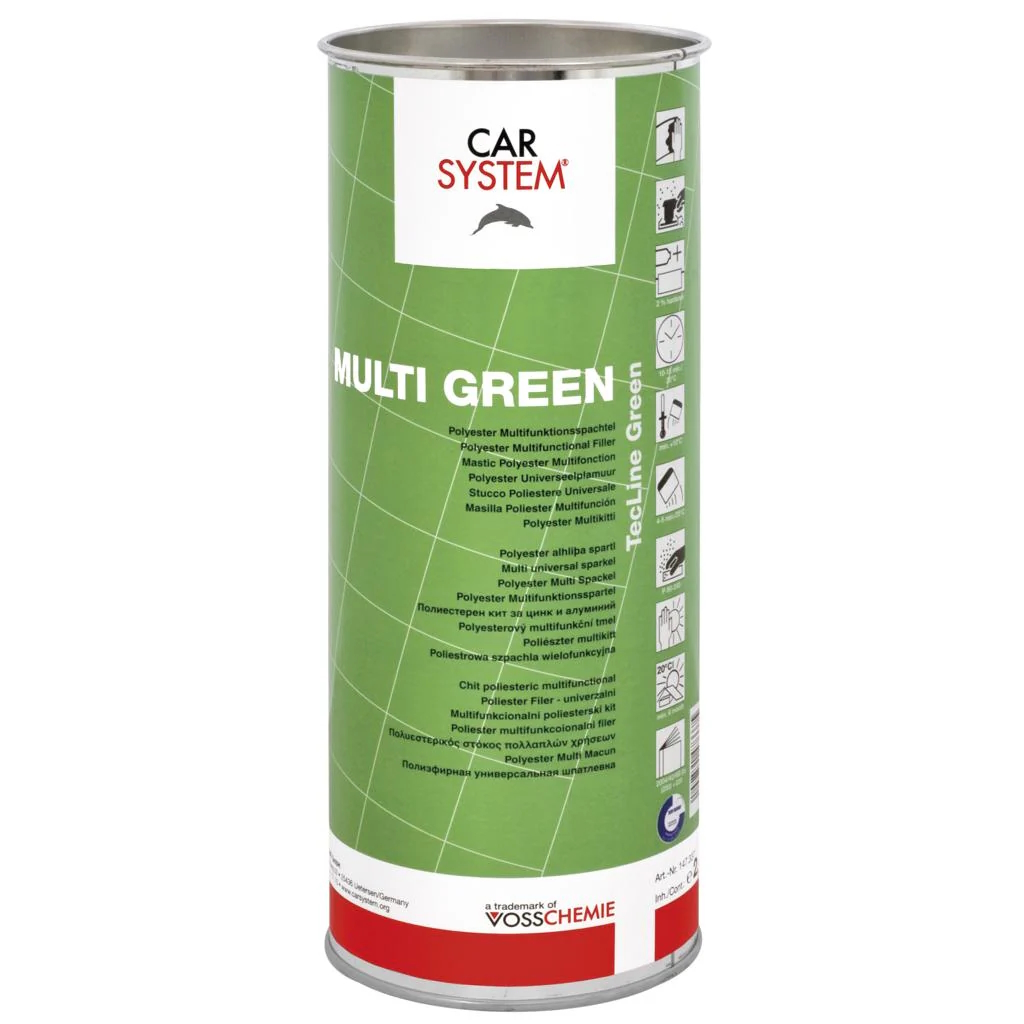 Carsystem Multi Green polyestersparkel er en multifunksjonell kitt med multi-vedheft for å fylle små til dype ujevnheter, bulker og riper. Multi Green har en god balanse mellom å være halvfast og kremaktig, slik at den er veldig behagelig å jobbe med.