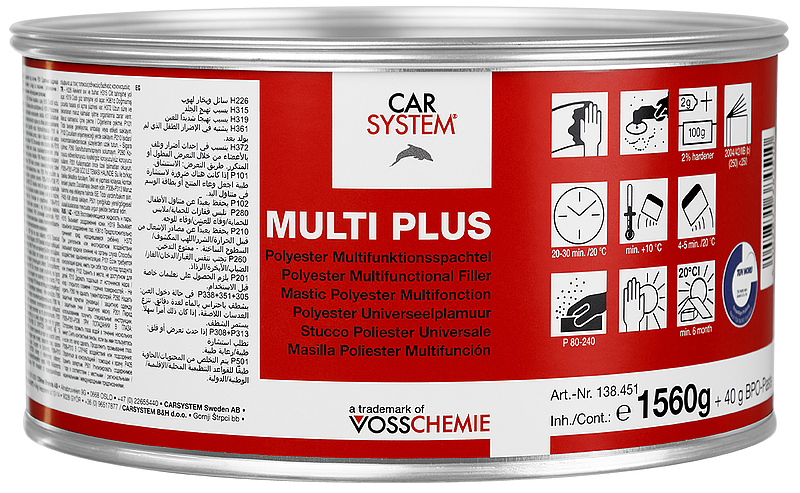 Multi Plus kan brukes for å fylle dype skader og bulker på kjøretøy. Det er også egnet for bruk på