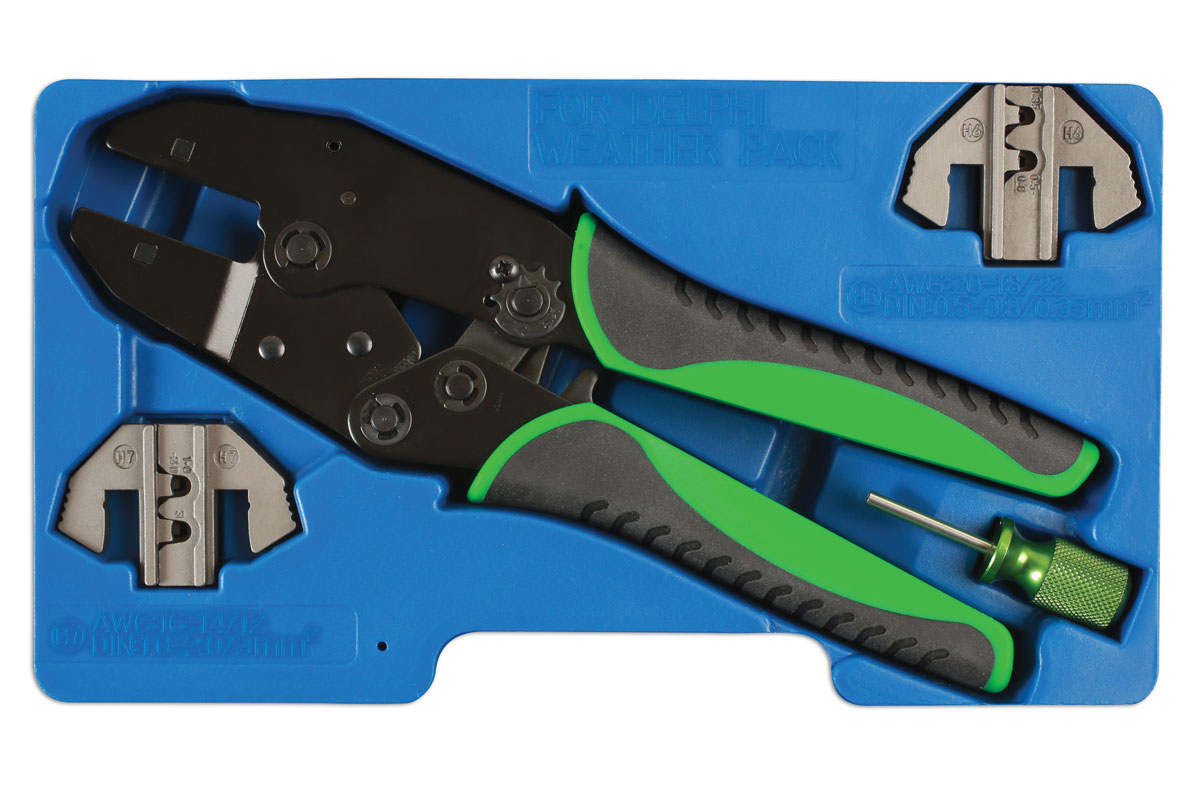 Spesiel kabeltang for Delphi vanntette kontakter, komplett med verktøy for terminal.