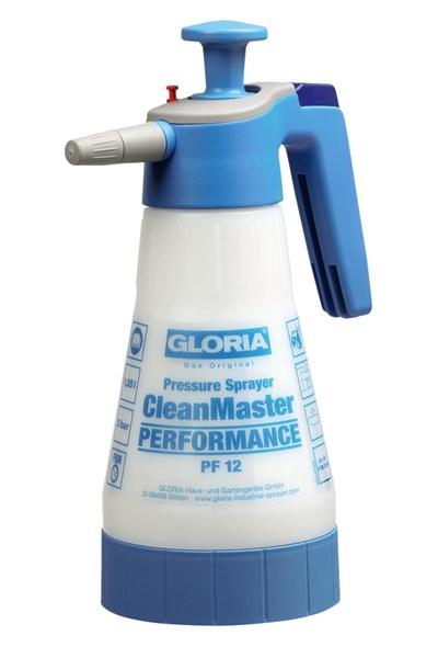 PF 12 er en pumpekanne med håndtak. Den har gjennomsiktig beholder, justerbar dyse og i tillegg har pumpen FKM tetninger av høy kvalitet. FKM tetninger gjør den egnet for påføring av avfettende, alkaliske og syrebaserte rengjøringsmidler. Tanken er utstyrt med en trykkavlastningsventil.