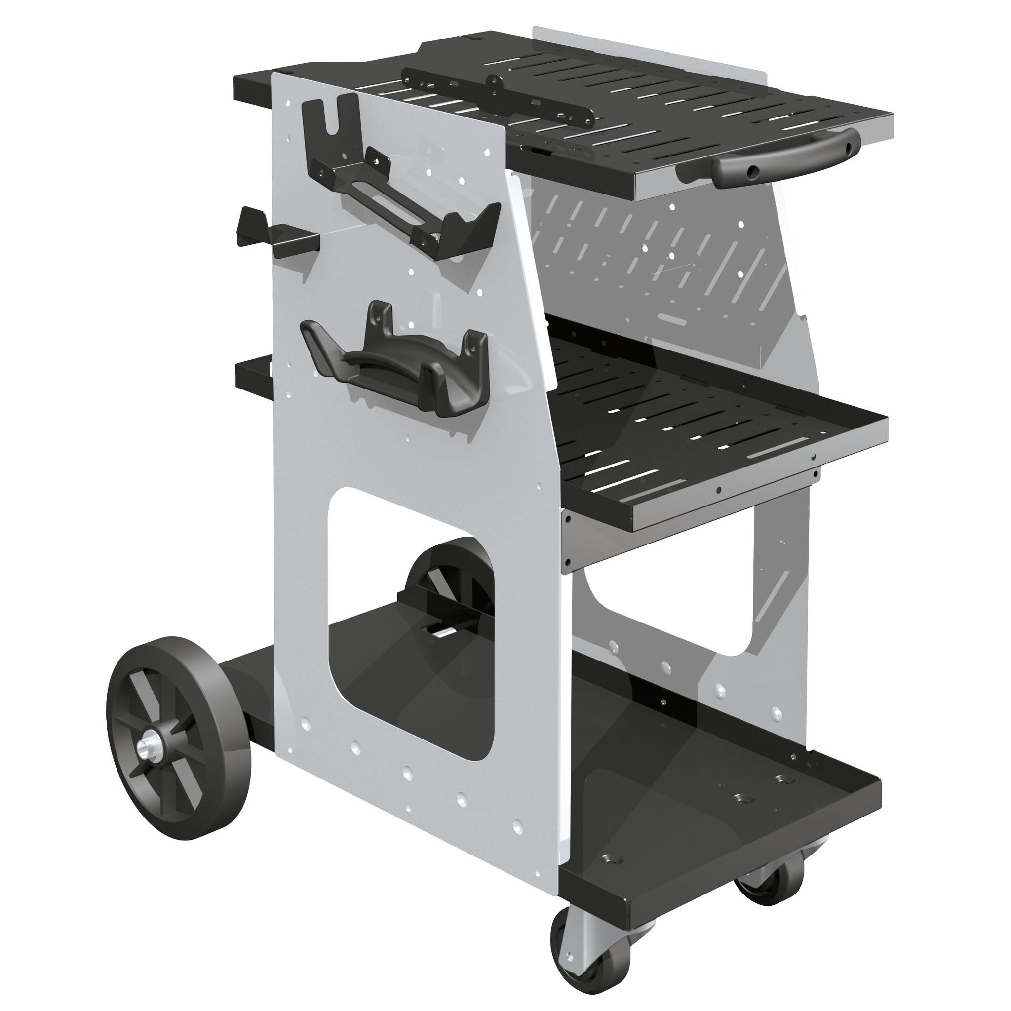 Praktisk vogn for oppbevaring av sveisemaskin, gassflaske med mer.