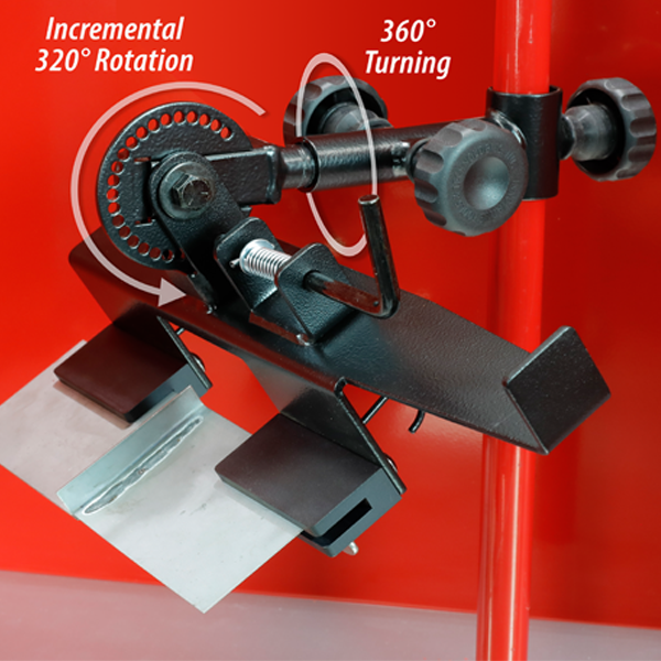 Den innovative sveiseteststasjonen, som er tilgjengelig i 1. kvartal 2025, inkluderer en 4-1/2 tommers skrustikke som brukes til å holde sveiseprøver under stresstestingsprosessen, brett for oppbevaring av dokumenter og oppbevaring av verktøy og rekvisita for hånden … noe som gjør den til en mobil alt-i-ett destruktiv sveisetestløsning.