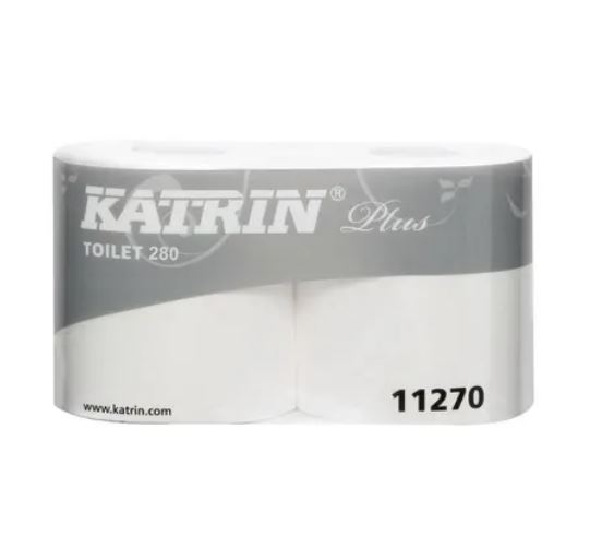 Katrin Plus 2-lags hvit ekstra mykt toalettpapir på rull. Et av de aller beste produkter med høy absorpsjonsevne og styrke. 39m og 2 80 ark på rull. Arkstr: 14×11,5cm.