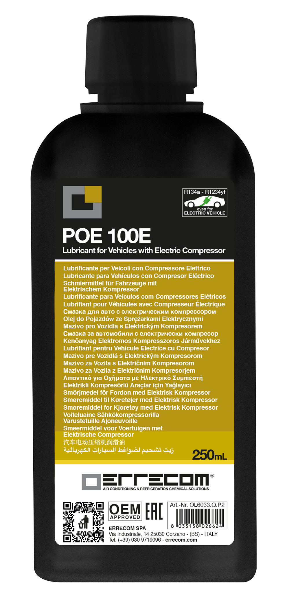 Errecoms POE oljer er syntetiske smøremidler spesielt utviklet for elektriske kompressorer.