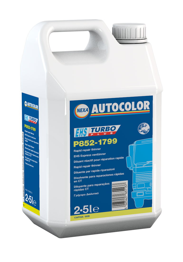 EHS Turbo Plus hurtigreparasjonstynner er beregnet for bruk med P565-1027/8 og EHS Turbo Plus og gir et lav-VOC-system med sterkt redusert gjennomtørkingstid ved ovnstørking, samtidig som den bevarer en fantastisk glans og holdbarhet som fullt ut oppfyller de høyeste kravene til standard som dagens flåteeiere stiller.