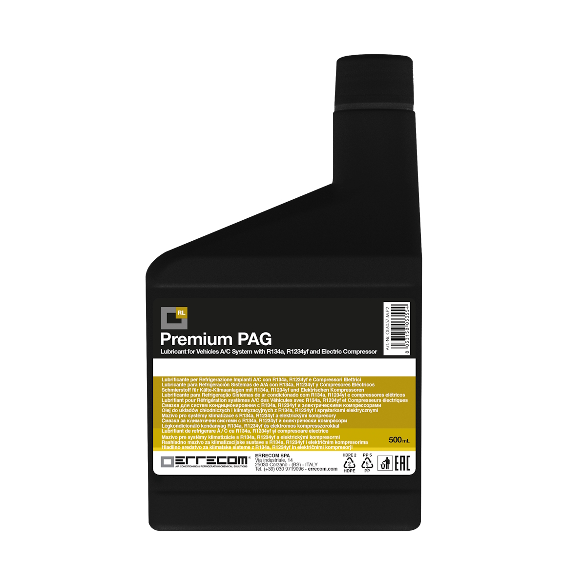 ERRECOM Premium PAG olje – for kjølegassene R134a / R1234yf for mekaniske og elektriske kompressorer som krever PAG olje.