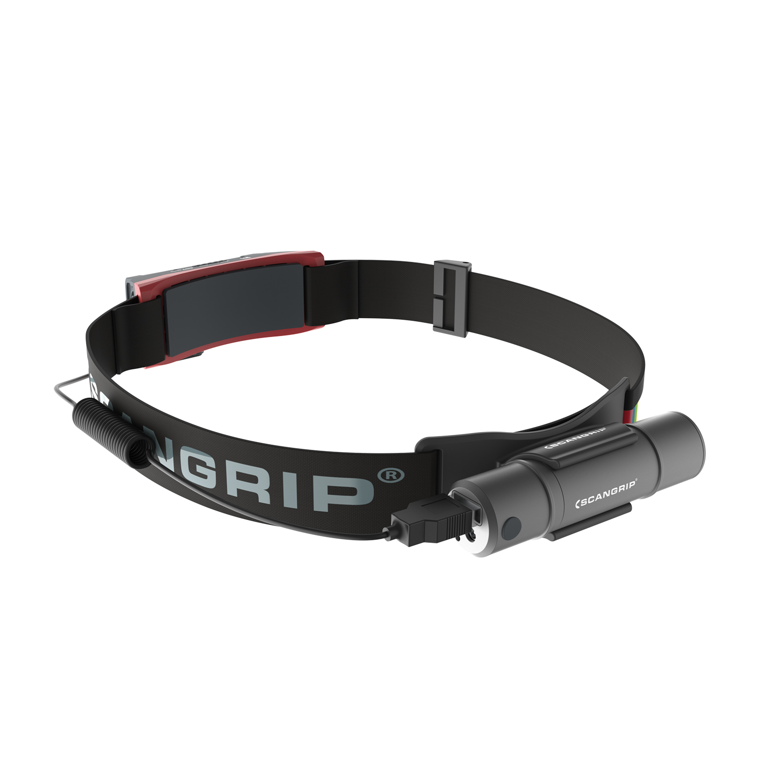 For lengre driftstid kan du bruke SCANGRIP POWER BANK 03.5962 som ekstrautstyr. Fest powerbanken til hodebåndet med den fleksible klipsholderen som følger med, og koble kabelen til hodelykten.