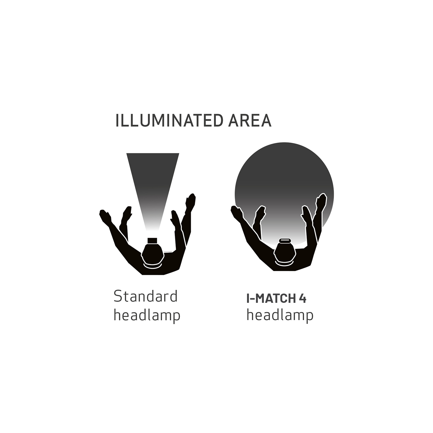 Hodelykten leverer 250 lumen med et jevnt lys som lyser opp hele synsfeltet ditt. Sammenlignet med forrige modell har I-MATCH 4 en forbedret brukergrensesnitt for CCT-kontroll og sensoraktivering. I sensormodus kan du enkelt se når sensoren er aktivert og slå lyset av/på ved å vinke med hånden foran lampen.