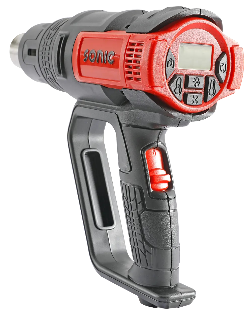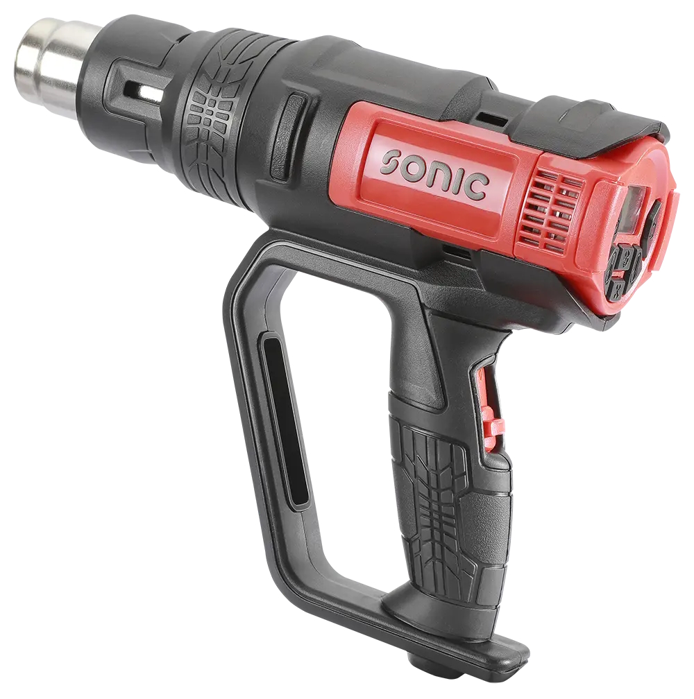 Sonik varmluftspistol 240V/2000W. Digitalt display med minnefunksjon. Sist innstilte temperatur og luftmengde gjelder ved start.